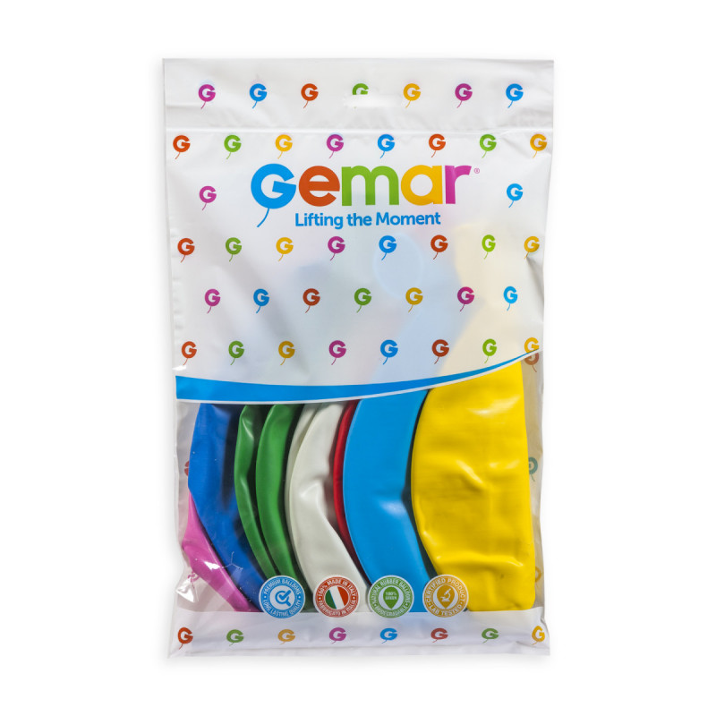 Assortiment Classique #080: Jaune #002, Orange #004, Rouge #045, Rose #006, Fuchsia #007, Violet #008, Bleu Clair #009, Bleu #010, Vert Clair #011, Vert #012 Diamètre: 100 cm Volume et capacité de gaz: 523L / 0,523 m³ Moyenne des ballons gonflés pour une bouteille de 8 m³ : 15